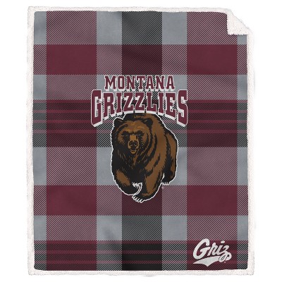 NCAA Montana Grizzlies Plaid Steel Royal Plush Faux Shearling Blanket