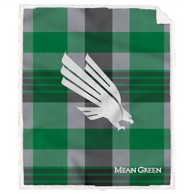 NCAA North Texas Mean Green Plaid Steel Royal Plush Faux Shearling Blanket