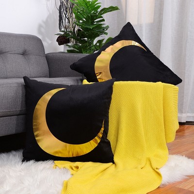 PiccoCasa 18" x 18" Polyester Crescent Print Decorative Pillow Cover Black 2 Pcs