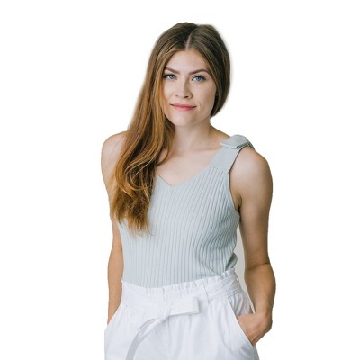 Hope & Henry Womens' V-Neck Rib Knit Tank with Bow
