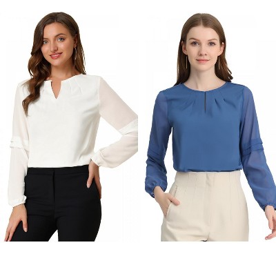 Women's Back See-Through Floral Lace Long Sleeve Fitted Blouse Tops with Deep V-Neck