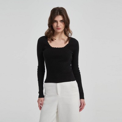 Women's Long Sleeve Lace Knit Top - A New Day™