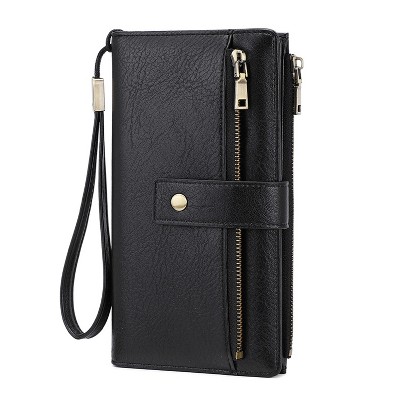 BABYYER Women's RFID Blocking PU Leather Wallet, Trifold Clutch Purse with Wrist Strap, Multi-Compartment Credit Card Holder with Zipper Pockets