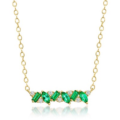 Pure Collection by Ross-Simons 0.20 ct. t.w. Lab-Grown Emerald Necklace With Lab-Grown Diamonds in 18kt Gold Vermeil Size 16
