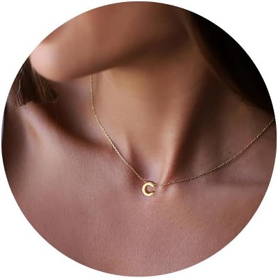 Personalized Initial Necklace: 18K Gold Plated over Stainless Steel, Dainty Tiny Letter Pendant for Women - Monogram Jewelry Gift