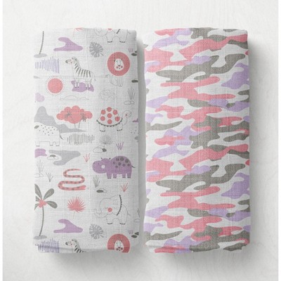 Jungle Safari Girls Lilac/Coral 2 pack Muslin Swaddling Blanket