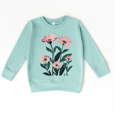 The Juniper Shop Pink Daisies Watercolor Toddler Sweatshirt - 2T - Seafoam