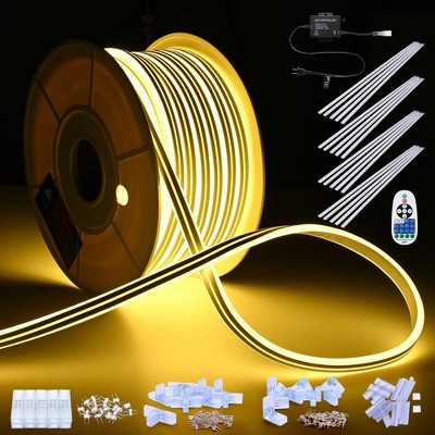DELight 50FT Warm White Neon Rope Lights with 2" Plastic U Channel System 10PCS,Remote Control AC 110V Waterproof Cuttable DEL-D1M50W Yellow