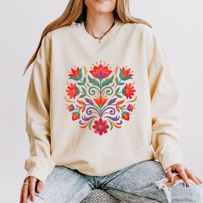 Swirly Florals Faux Texture - Women's Lightweight Garment Dyed Sweatshirt