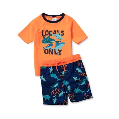 Lands' End Kids Chlorine Resistant Short Sleeve UPF 50 Rash Guard Swim Trunk Set