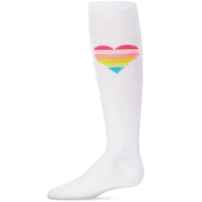 Memoi Neon Stitched Heart Cotton Blend Knee High Sock