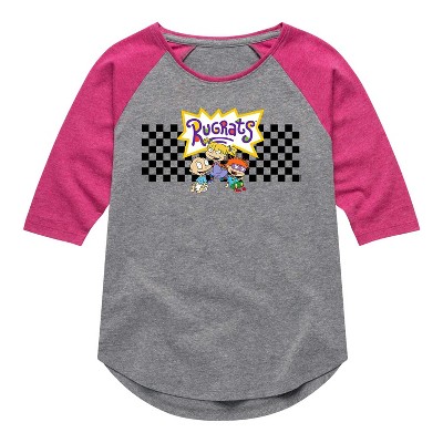 Girls' - Rugrats - Checkered Group Shirt Tail Raglan Graphic T-shirt