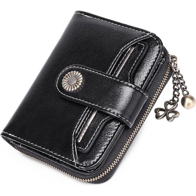 Wikineon Small Wallet for Women Synthetic Leather RFID Blocking Wristlet Wallet Credit Card Holder with Double Zipper Coin Purse Ladies Bifold Purse