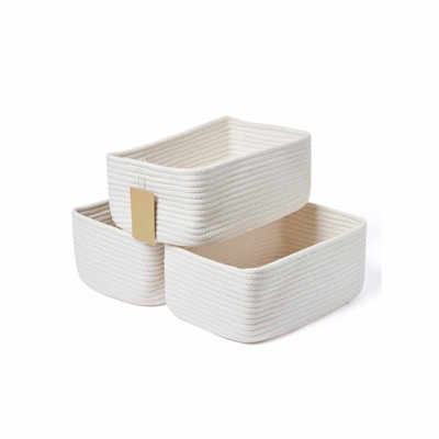 Aoibox Woven Cotton Rope Storage Baskets Set of 3 Off White Decorative Cube Organizers for Closet Shelf 11.5x7.5x4.7