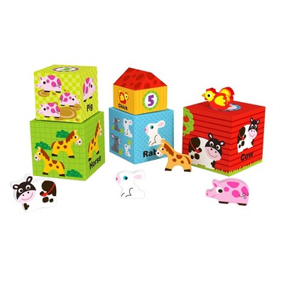 Colorful Nesting Box Farm with 5 Boxes and 4 Animal Figures Creativity Toy for Kids