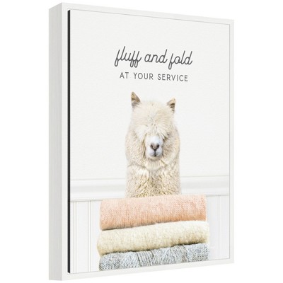 Kate and Laurel Alpaca Fluff and Fold Framed Canvas by Amy Peterson, 18x24, White