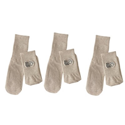 Anna-Kaci Women's 3-Pair Crew Socks Soft Stretch Knit with Embroidered Graphic Comfortable Everyday Sock Set - Khaki