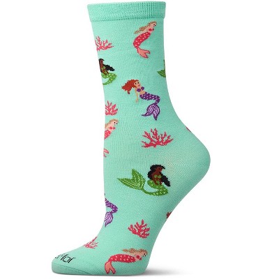 Memoi Women's "Rodeo Cats" Rayon-Blend Novelty Crew Sock Aqua Haze 9-11
