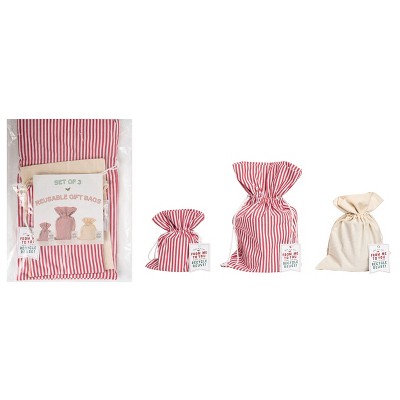 Transpac 18 in Multicolored Christmas Reusable Gift Bags Set of 3 Polyester Holiday Gift Wrap