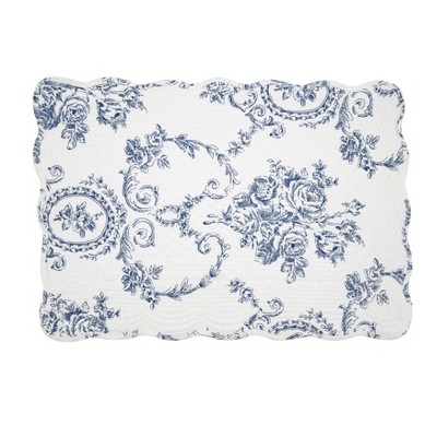 Saro Lifestyle Quilted Toile Floral Placemat (Set of 4), 14"x20", Indigo