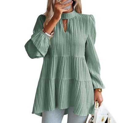 Coolmee Women's Fall Fashion Long Sleeve Shirts Dressy Casual Pleated Basic Trendy Tops Winter Clothes
