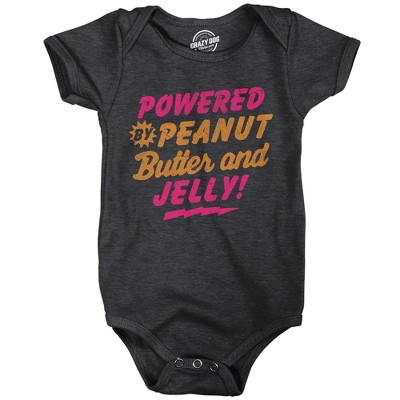 Powered By Peanut Butter and Jelly Baby Bodysuit Funny Sarcastic PB&J Graphic Novelty Jumper for Infants - Crazy Dog Baby Bodysuit For Foodies