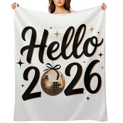Soscooter 2026 New Year Flannel Blanket Hello 2026 Disco Ball Pattern Soft Cozy Decorative Throw Blanket for Holiday Home