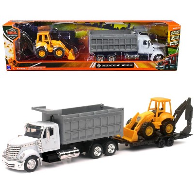 International Lonestar Dump Truck White and Wheel Loader Yellow with Flatbed Trailer 1/43 Diecast Model by New Ray