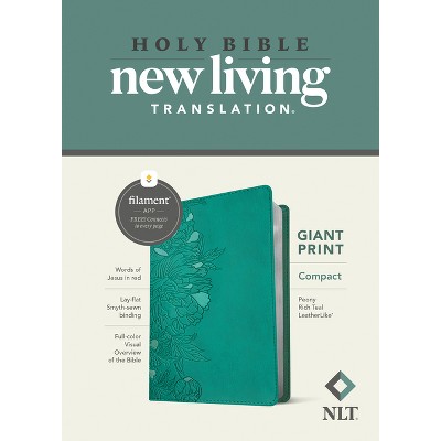 NLT Compact Giant Print Bible, Filament Enabled (Leatherlike, Peony Rich Teal, Red Letter) - by New Living Translation (Leather Bound)