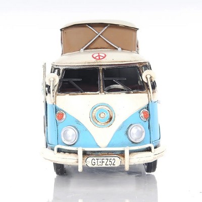 Old Modern Handicrafts Volkswagen Camp Bus – Handmade Iron Hippie Van with Rolling Wheels, 11.5" Long