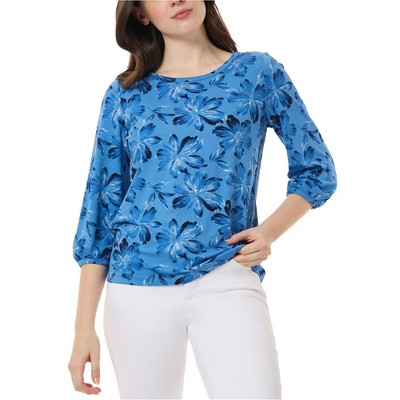 Jones New York Womens Brown Top Floral Peasant Blouse