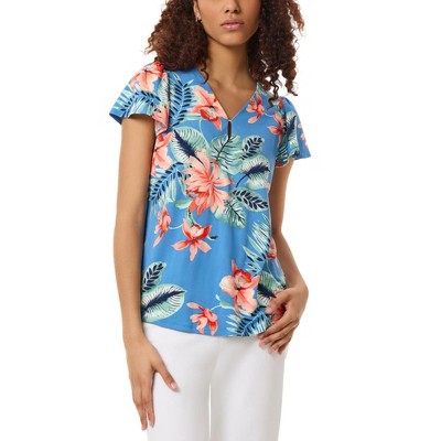 Jones New York Womens Brown Top Floral Peasant Blouse