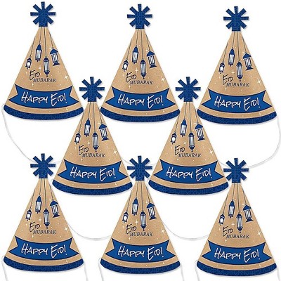 Big Dot of Happiness Eid Mubarak - Mini Happy Eid Cone Hats - Small Little Ramadan Party Hats - Set of 8