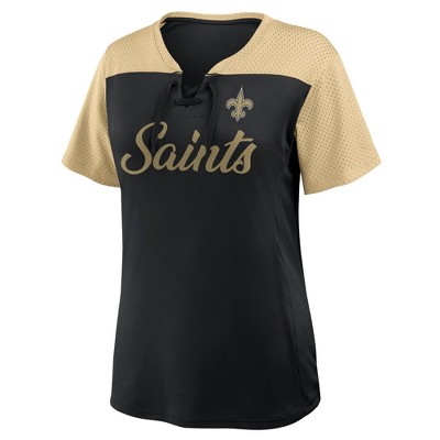 NFL New Orleans Saints Women's Short Sleeve Lace Up V-Neck Top