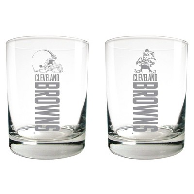 NFL Cleveland Browns 2pk Glass Rocks Set