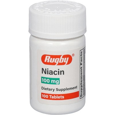 Rugby Niacin 100 mg Tablets for Energy Metabolism & Cardiovascular Health Support, 100 Tablets