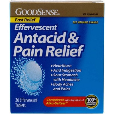 GoodSense Antacid & Pain Relief Effervescent Tablets for Fast Relief of Heartburn, Sour Stomach, and Indigestion 36 Ct