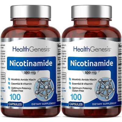 Health Genesis Nicotinamide 500 mg 100 Capsules - 2 Pack