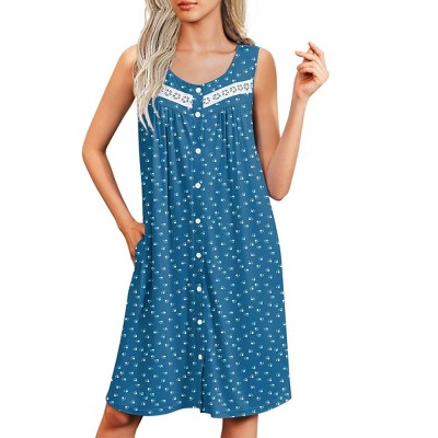 Ekouaer Nightgowns for Women Button Up Sleepshirt Tank Sleeveless Nightshirt Soft Sleepwear with Pockets