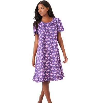 CTM Women's Flower Henley Short Sleeve Sleep Gown