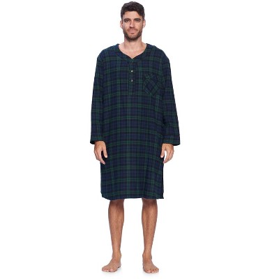 Ashford & Brooks Mens Flannel Plaid Long Sleep Shirt Henley Nightshirt