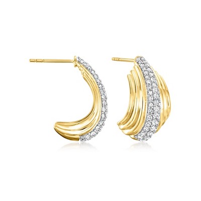 Ross-Simons 1.00 ct. t.w. Diamond J-Hoop Earrings in 18kt Gold Over Sterling