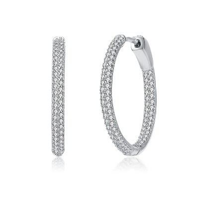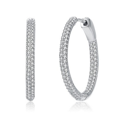 Bella Silver Sterling Silver Ultra-Thin 25mm Hoop CZ Earrings - Marquise - Silver