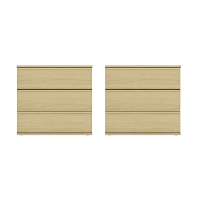 Manhattan Comfort 26" Molly 3 Drawer Nightstand Set of 2 Natural Oak
