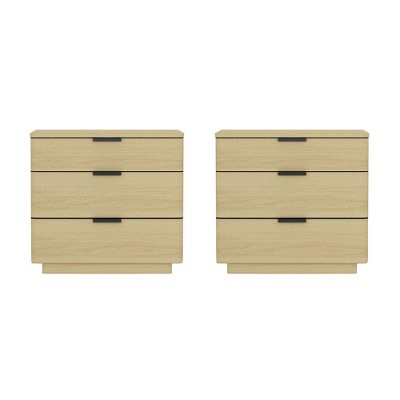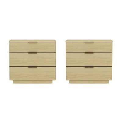 Manhattan Comfort 26" Payton 3 Drawer Nightstand Set of 2 Natural Oak