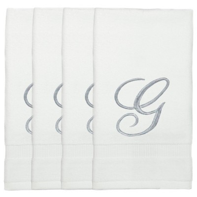 BC BARE COTTON Monogrammed Hand Towel, 100% Turkish Cotton - Set of 2 - White - Silver Script