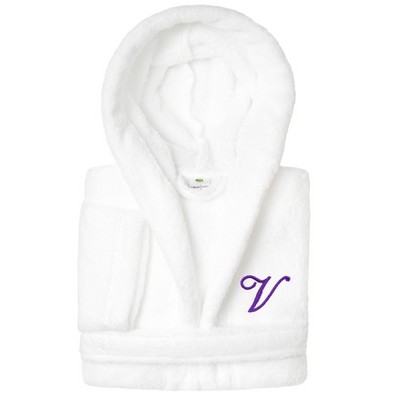 Personalized Linum Kids 100% Polyester SUPER PLUSH Double Brushed Hooded Bathrobe in White Bookman Font