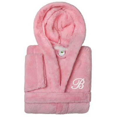 Personalized Linum Kids 100% Polyester SUPER PLUSH Double Brushed Hooded Bathrobe in Pink Bookman Font