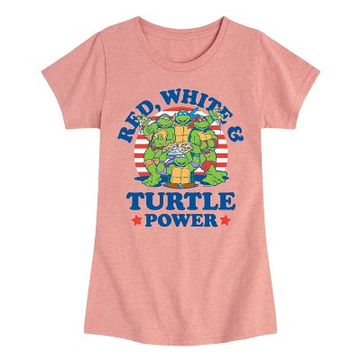 Girls' - Teenage Mutant Ninja Turtles - Red White Turtle Power Fitted Short Sleeve Graphic T-Shirt