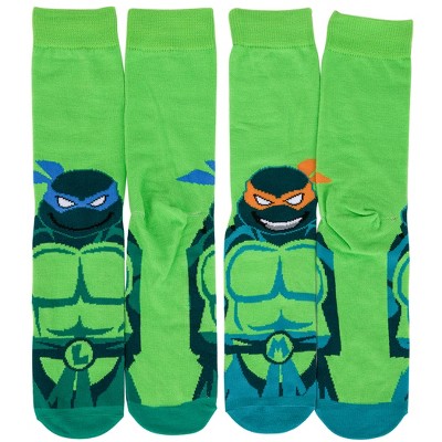 Mens Teenage Mutant Ninja Turtles Leo and Mikey Crew Socks 2-Pack